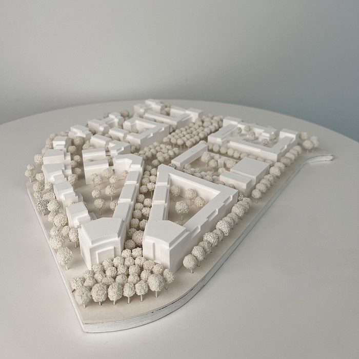 Die Stefan Forster GmbH ist hierbei mit dem Entwurf des Lindwurmareals als Teil der Ausstellung vertreten. Nachdem das Büro den ersten Preis des Realisierungswettbewerbes Lindwurmareal für sich gewinnen konnte, wird nun die in den 1960er-Jahren geplante Großwohnsiedlung durch Sanierung des Bestandes und partielle Nachverdichtung revitalisiert und zu einem lebhaften Quartier umgestaltet. Durch die Neubauten werden parkartige Freianlagen gebildet und das Areal städtebaulich in die Nachbarschaft eingebunden.