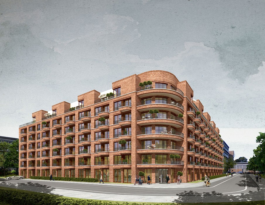 Die hochwertig ausgestatteten Wohnungen mit ein bis fünf Zimmern und einer Größe von 30 bis 185 Quadratmetern werden teils über Loggien, Terrassen und Balkone verfügen. Zusätzlich sind zwei Gewerbeeinheiten mit insgesamt rund 215 Quadratmetern sowie eine Tiefgarage mit mehr als 400 Stellplätzen geplant, ergänzt durch mehr als 600 Fahrradstellplätze und ein multimodales Mobilitätskonzept. Das Quartier wird nach KfW-Effizienzhaus-55-Standard gebaut.