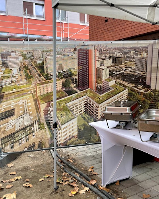 Zusammen mit der GWH Bauprojekte GmbH haben wir am Donnerstag, den 8. September 2022, das Richtfest für die Quartiersentwicklung Lyoner Straße 04 in der ehemaligen Bürostadt Niederrad in Frankfurt gefeiert. Das Projekt steht im Kontext der Transformation der Bürostadt in ein gemischt genutztes Stadtquartier – dem neuen „Lyoner Viertel“.