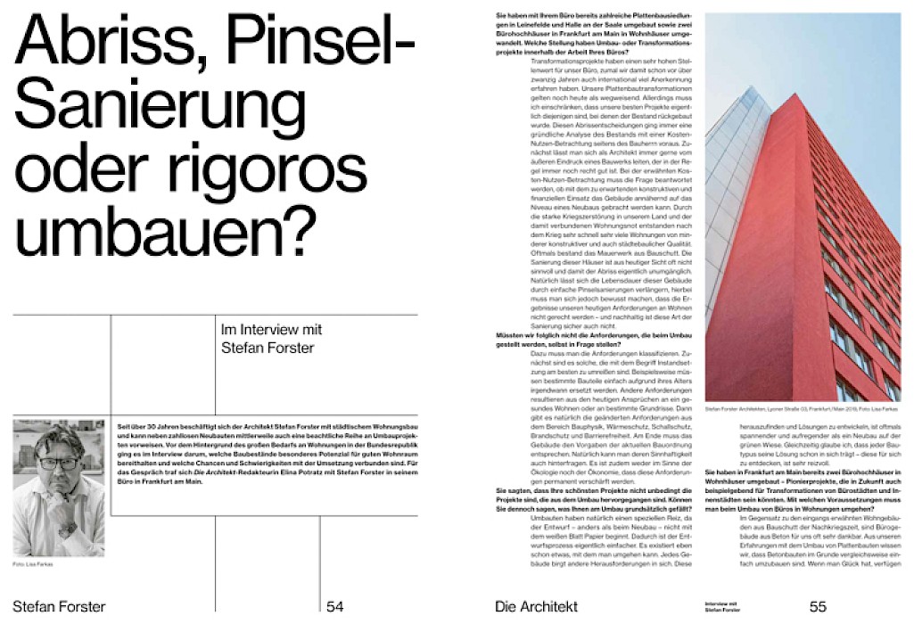 Interview: Stefan Forster, „Abriss, Pinselsanierung oder rigoros umbauen?“, die architekt, 3/2022