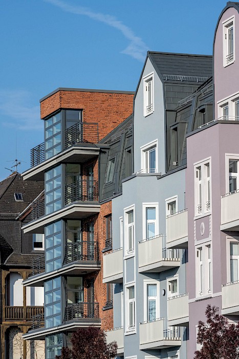 Das Architekturportal BauNetz berichtet in einer aktuellen Meldung über die Realisierung von vier Wohnhäusern an der Frankfurter Sonnemannstraße: „Mit dem Projekt waren mehrere Aufgaben verbunden. Dazu gehörte die umfangreiche Sanierungen der beiden schlichten Gründerzeitbauten. Das rechte der beiden Häuser war durch einen Brand stark beschädigt. Die Dachpartien beider Bauten wurden neu gestaltet und die Erdgeschosszone neu organisiert.“
