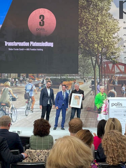 Der Umbau der Frankfurter Platensiedlung wurde in der Kategorie „Intelligente Transformation“ mit dem 3. Preis beim polis Award 2022 ausgezeichnet. Mit 681 neuen Wohnungen, zwei Kitas, Cafés, Läden und einem Nachbarschaftstreff zählt die Platensiedlung zu den größten Nachverdichtungsprojekten in Deutschland. Konzept und Planung wurden im Auftrag der kommunalen Wohnungsbaugesellschaft ABG Frankfurt von Stefan Forster Architekten entwickelt. Der Preis wurde am 27. April 2022 im Rahmen der polis Convention in Düsseldorf verliehen.