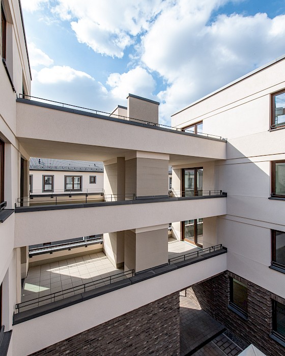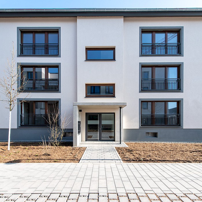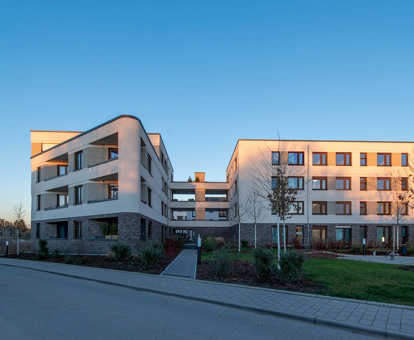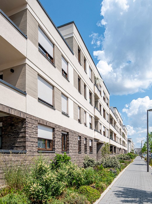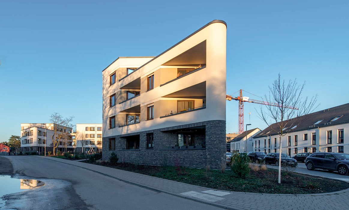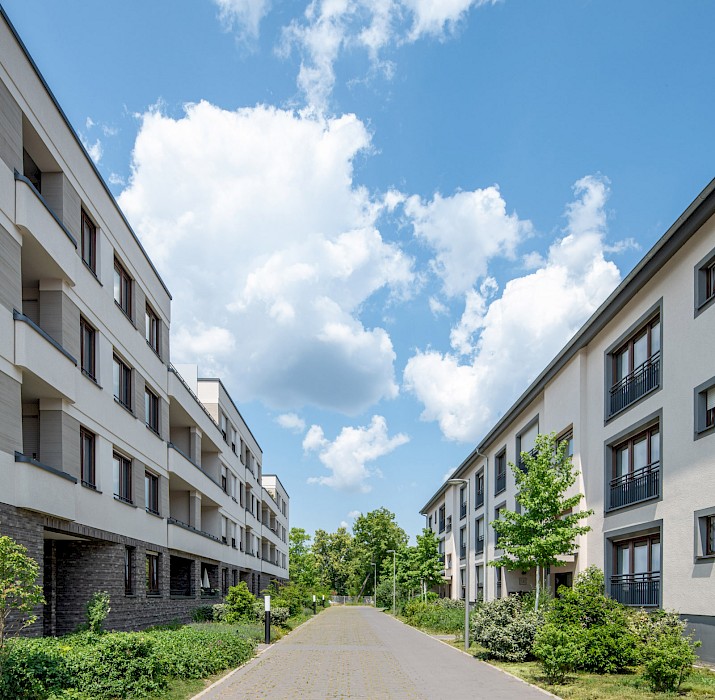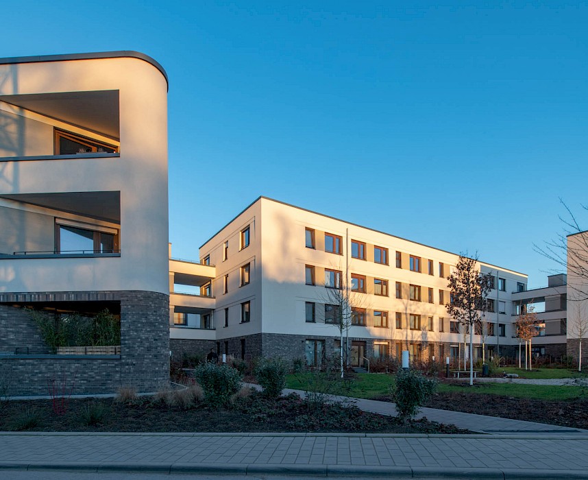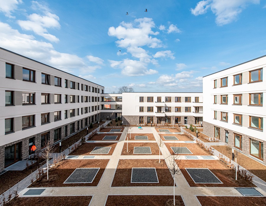Im Auftrag der GWH Bauprojekte GmbH entstanden zwei Karrees mit insgesamt 155 Wohnungen, ergänzt um die Sanierung eines bestehenden Kasernenbaus mit 12 Wohnungen. Der Entwurf der Neubauten entwickelt die Idee des städtischen Blocks mit geschützten Innenbereichen zur freien Benutzung und Aneignung durch die Bewohner weiter. Durch die Transformation des Blocks, der immer wieder durch transparente Loggien unterbrochen wird, werden Einblicke in den grünen Innenhof ermöglicht ohne die Geschlossenheit des Baukörpers aufzugeben. Die Ensemblewirkung wird durch einen umlaufenden, alle Gebäude verbindenden Klinkersockel verstärkt.