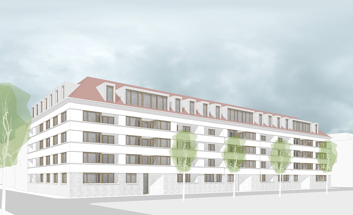 Die Pläne für den Ersatzneubau entlang der Französischen Allee nehmen Gestalt an. Am Mittwoch wurde der Bauantrag für 57 großzügige Wohnungen im KfW 70 Standard eingereicht.