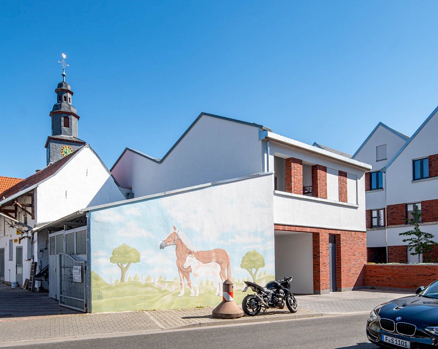 Im Norden von Frankfurt liegt der historisch gewachsene Stadtbezirk Kalbach. Über Jahrhunderte landwirtschaftlich geprägt, wurde die charakteristische, dörfliche Baustruktur in den 1960er- und 1970er-Jahren durch unmaßstäbliche Neubauten überformt. Das willkürliche Nebeneinander der alten und neuen Bebauung prägt die städtebauliche Realität.