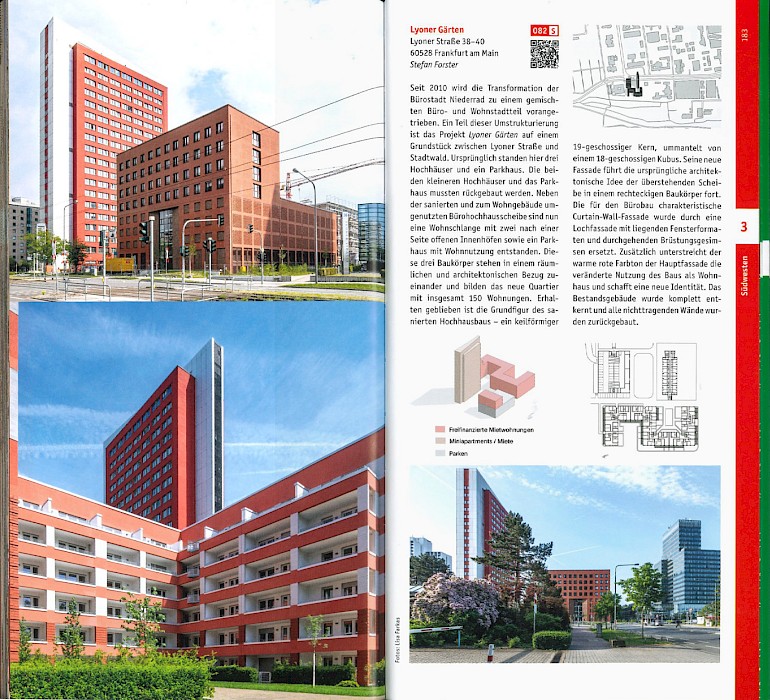 Der Architekturführer Deutschland 2025 stellt die Longlist des DAM Preises für Architektur 2025 vor. Wir freuen uns, dass unser Wohnprojekt „Lyoner Gärten“ in Frankfurt Teil der Auswahl ist. Das Projekt steht exemplartisch für die Umstrukturierung der ehemaligen Bürostadt Niederrad.