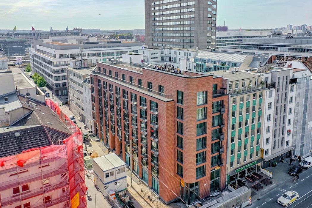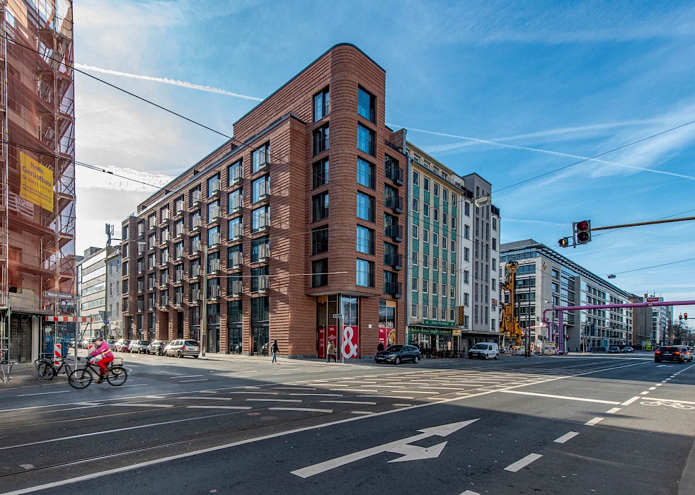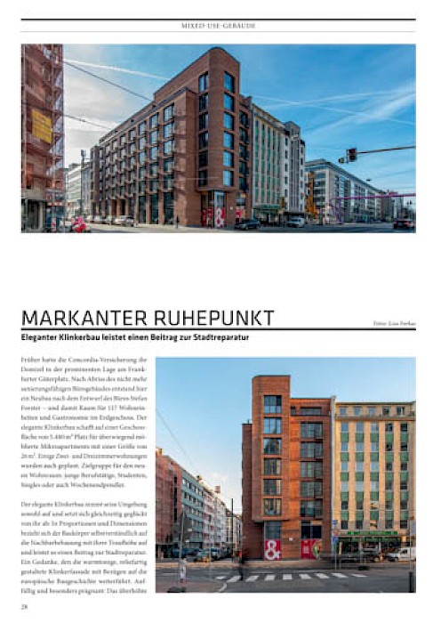 „Markanter Ruhepunkt“: Das Architektur- und Lifestylemagazin Cube präsentiert unser Appartementhaus an der Mainzer Landstraße in Frankfurt. Der Klinkerbau ersetzt ein leerstehendes Bürogebäude der Concordia-Versicherung und bietet Raum für 117 Mikroappartements und Wohnungen. Zusätzlich beherbergt das Erdgeschoss zwei Einheiten für Gastronomie und Gewerbe.