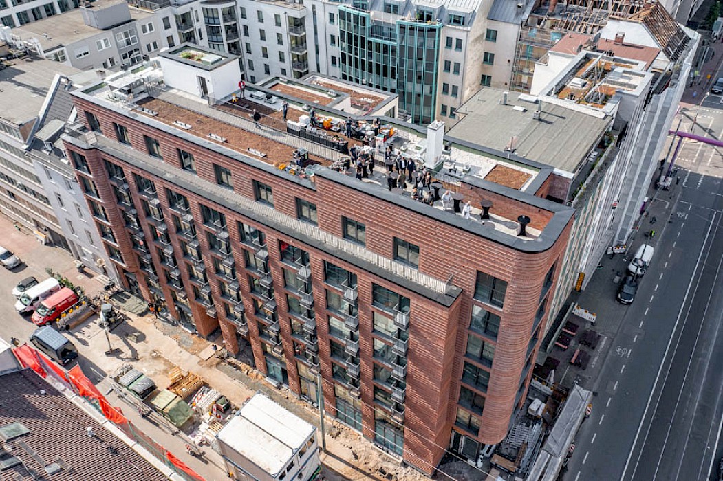 Am Freitag, den 1. Oktober 2021, wurde das Richtfest für das Appartementhaus Mainzer Landstraße gefeiert. In prominenter Lage direkt am Frankfurter Güterplatz – zwischen Gallus und Europaviertel – sind 117 Wohneinheiten und zwei Läden im Erdgeschoss entstanden.