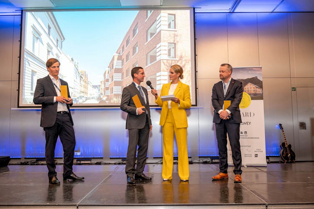 Gleich vier Projekte aus dem Büro Stefan Forster wurden bei der Preisverleihung am Montag, den 10. Oktober 2022, im Münchner Haus der Architektur als „Wohnbauten des Jahres 2022“ ausgezeichnet. Neben dem Wohnprojekt Adolfstraße in Hannover („Hannover 01“) und dem genossenschaftlichen Wohnhaus Lameygarten in Mannheim wurde auch das Appartementhaus Mainzer Landstraße und die Wohnhäuser Sonnemannstraße – beide in Frankfurt am Main – mit einer Auszeichnung bedacht. Die Auszeichnungen wurden von unserem Geschäftsführer Florian Kraft entgegengenommen. Wir danken unseren Bauherren, dem Callwey-Verlag und der Moderatorin Judith Rakers!
