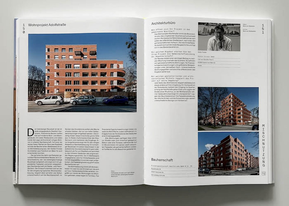 Wir freuen uns sehr, in der aktuellen Ausgabe mit gleich vier Projekten vertreten zu sein: Dem Wohnprojekt Adolfstraße in Hannover („Hannover 01“), dem genossenschaftlichen Wohnhaus Lameygarten in Mannheim sowie dem Appartementhaus Mainzer Landstraße und den Wohnhäusern Sonnemannstraße in Frankfurt.
