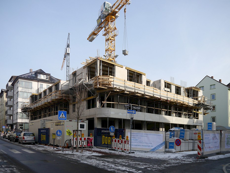 Rohbau des Wohnprojekts Sandweg in Frankfurt schreitet voran
