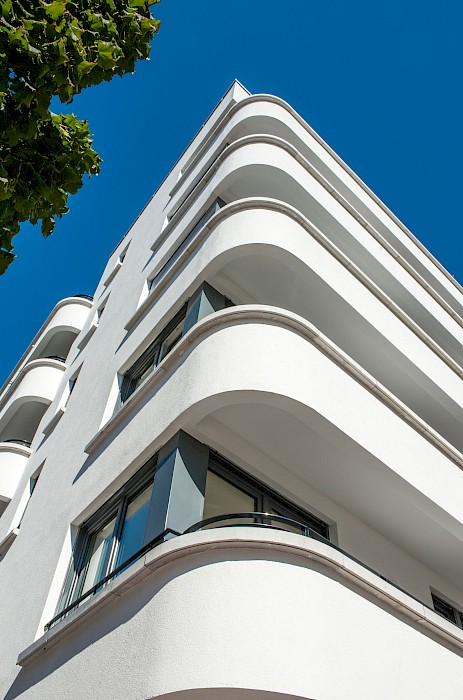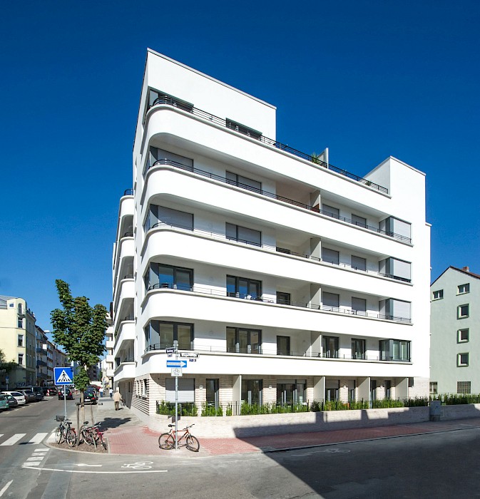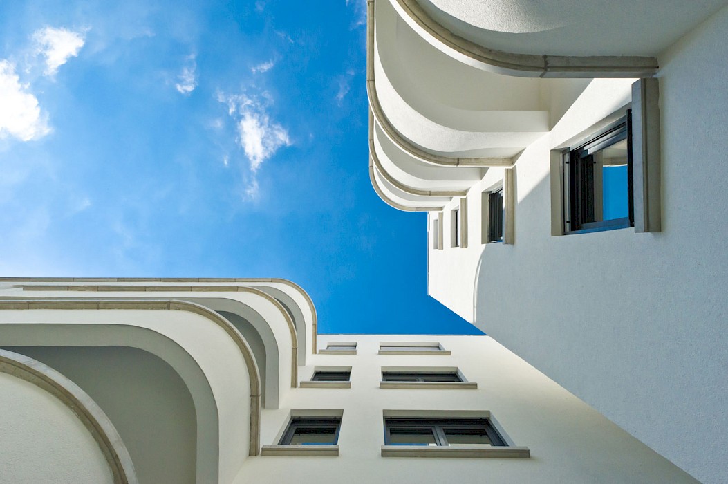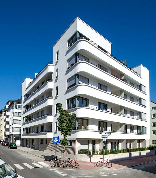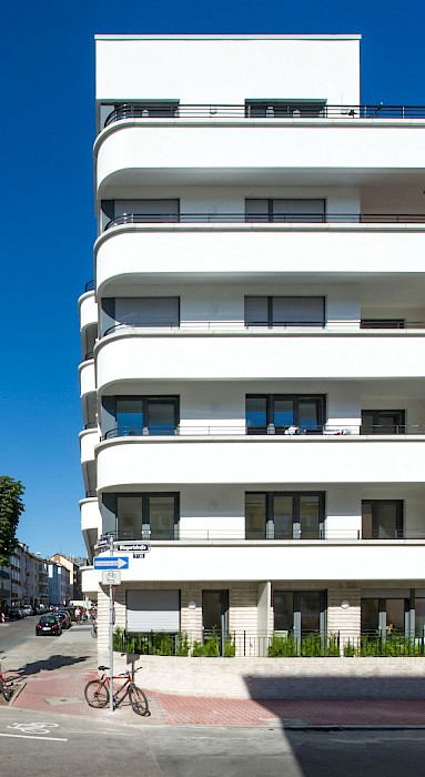 Südländisches Flair im Frankfurter Stadtteil Bornheim: Zeitlose Eleganz mit formale Anklängen an die Architektursprache der vom Bauhaus Stil geprägten Stadt Tel Aviv, auch bekannt als „The White City“, zeichnet den Neubau Sandweg aus. Auf einem der wenigen innerstädtischen Restgrundstücke – vormals Tankstelle – entstanden im Zuge der Nachverdichtung insgesamt 31 hochwertige Wohnungen, sowie ein Zweifamilienwohnhaus im Hinterhof.