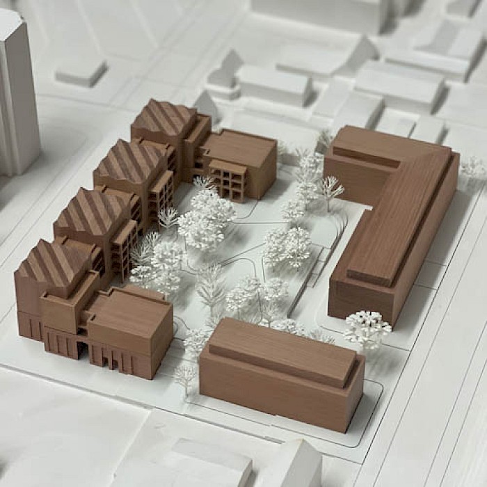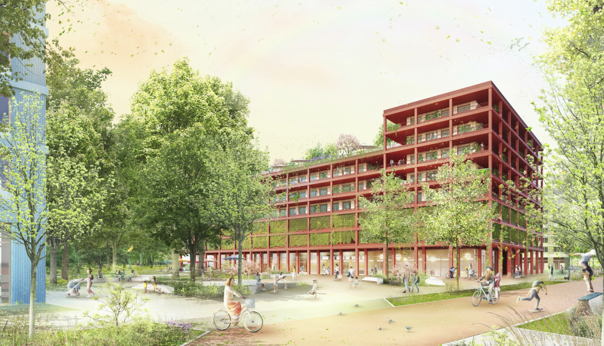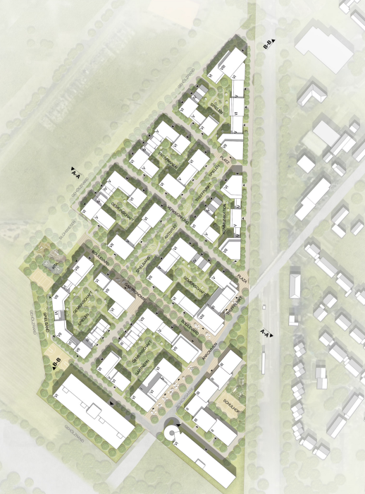 Durch die Zusammensetzung von unterschiedlichen Typologien im Quartier, sowie eine ausdifferenzierte Höhenstaffelung entstehen lebendige Räume mit einem urbanen Dorfcharakter und einer sozial durchmischten Bevölkerungsschicht. An den Zugängen ins Viertel dienen überhöhte Gebäude der Orientierung und sind identitätsstiftend.