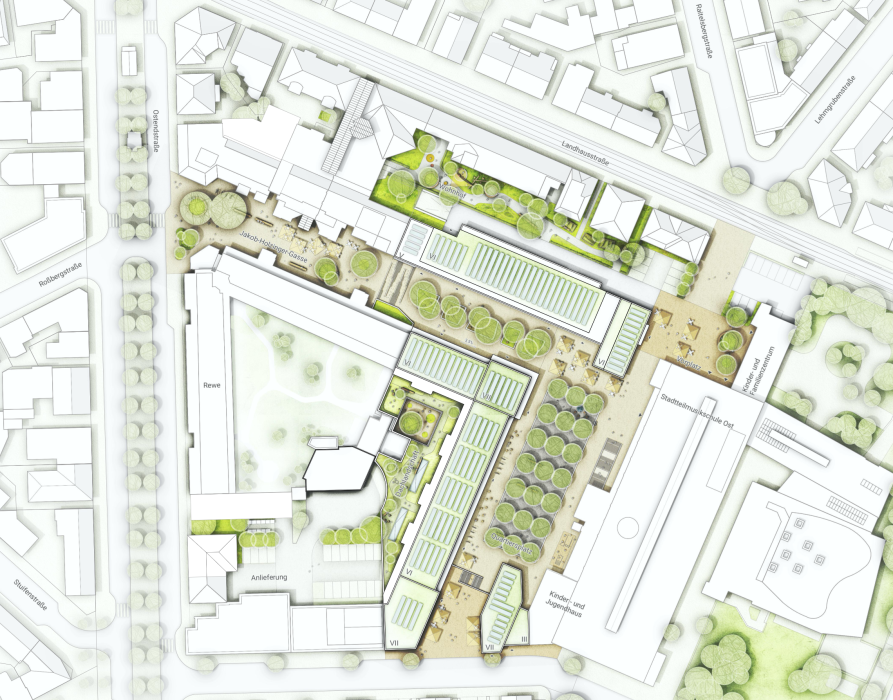 Im Wettbewerbsverfahren für das Modellvorhaben „Klimaquartier Schweinfurt“ wurde unser Entwurf nach einer Überarbeitung mit dem zweiten Preis ausgezeichnet. Gegenstand des Verfahrens war eine Quartiersentwicklung mit integrierter Freiraumplanung innerhalb des Gesamtprojekts Klimaquartier. Als Modellprojekt für zukunftsweisenden Städte- und Wohnungsbau verfolgt das Bayerische Staatsministerium für Wohnen, Bau und Verkehr das Ziel, einen klimaneutralen und klimaresistenten Stadtteil zu schaffen, der intensiven Hitzewellen und Extremwettereignissen begegnen kann.
