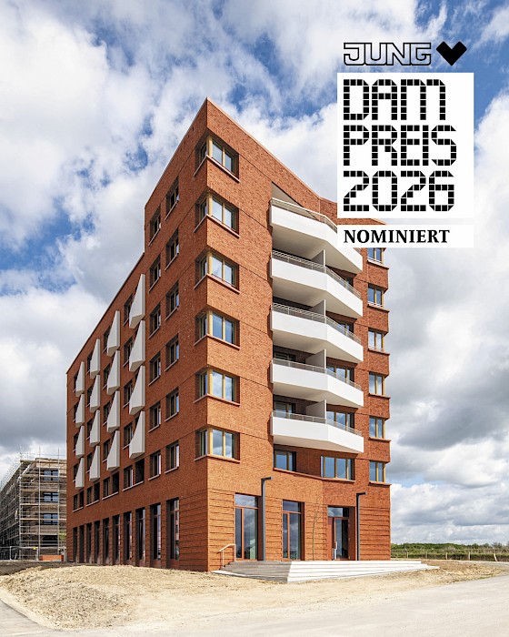 Seit 2007 werden mit dem DAM Preis für Architektur jährlich herausragende Bauten in Deutschland ausgezeichnet. Zu den hundert nominierten Bauten auf der Longlist des DAM Preises 2023 hat die Jury unsere Wohnhäuser in der Frankfurter Sonnemannstraße gewählt. Die Shortlist wird Ende der Sommerpause bekanntgeben. Der DAM Preis wird vom Deutschen Architekturmuseum (DAM) in Kooperation mit JUNG vergeben.