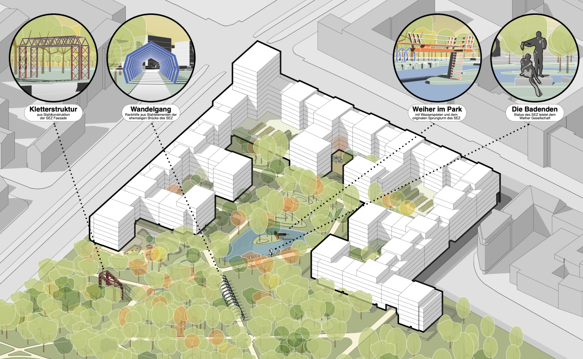 1. Preis beim Gutachterverfahren „Wohnquartier auf dem SEZ Gelände“ in Berlin