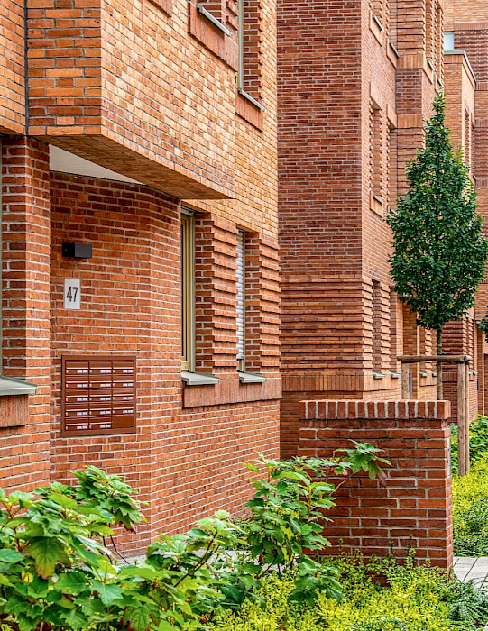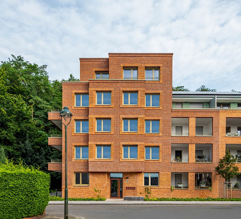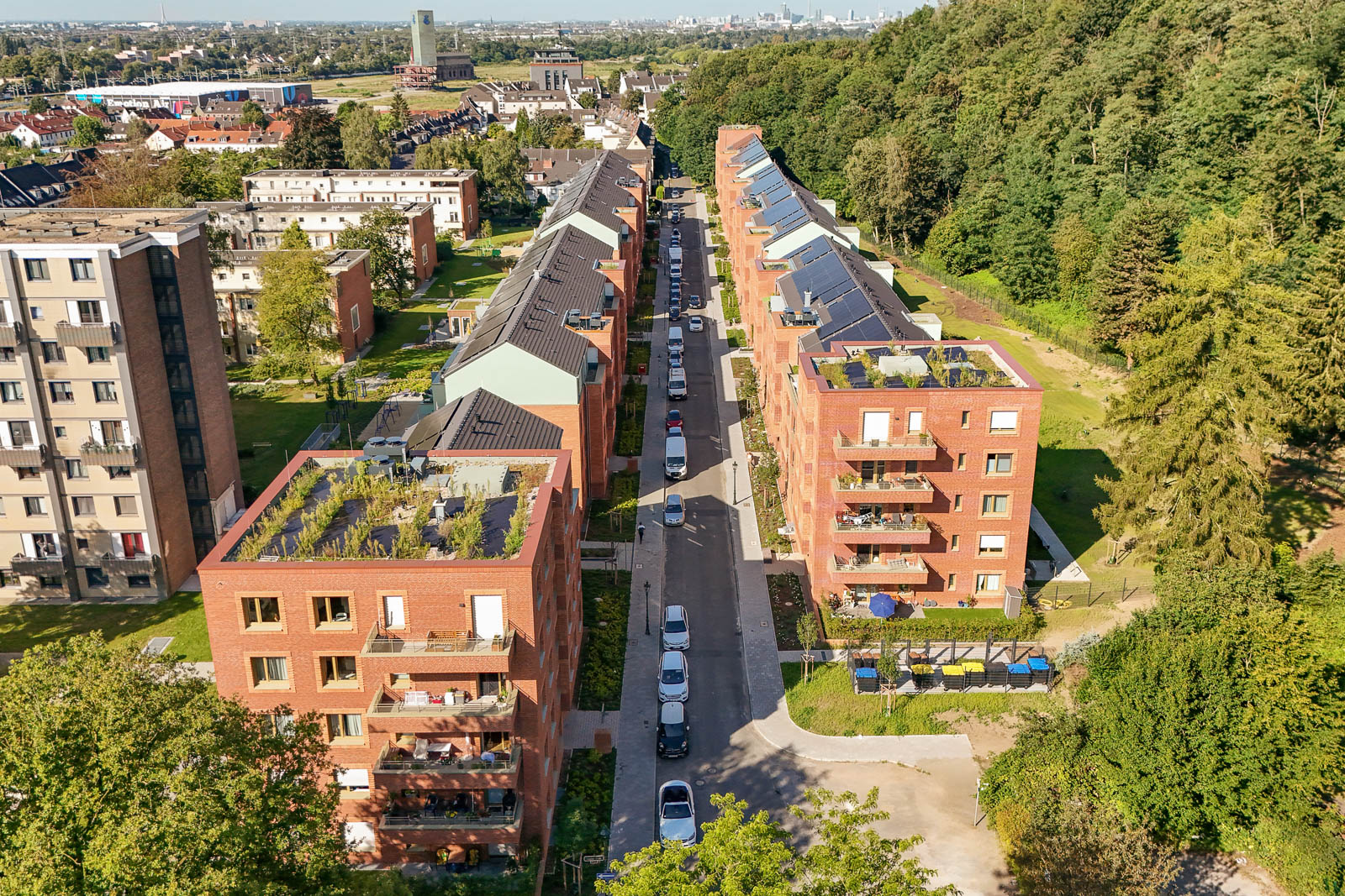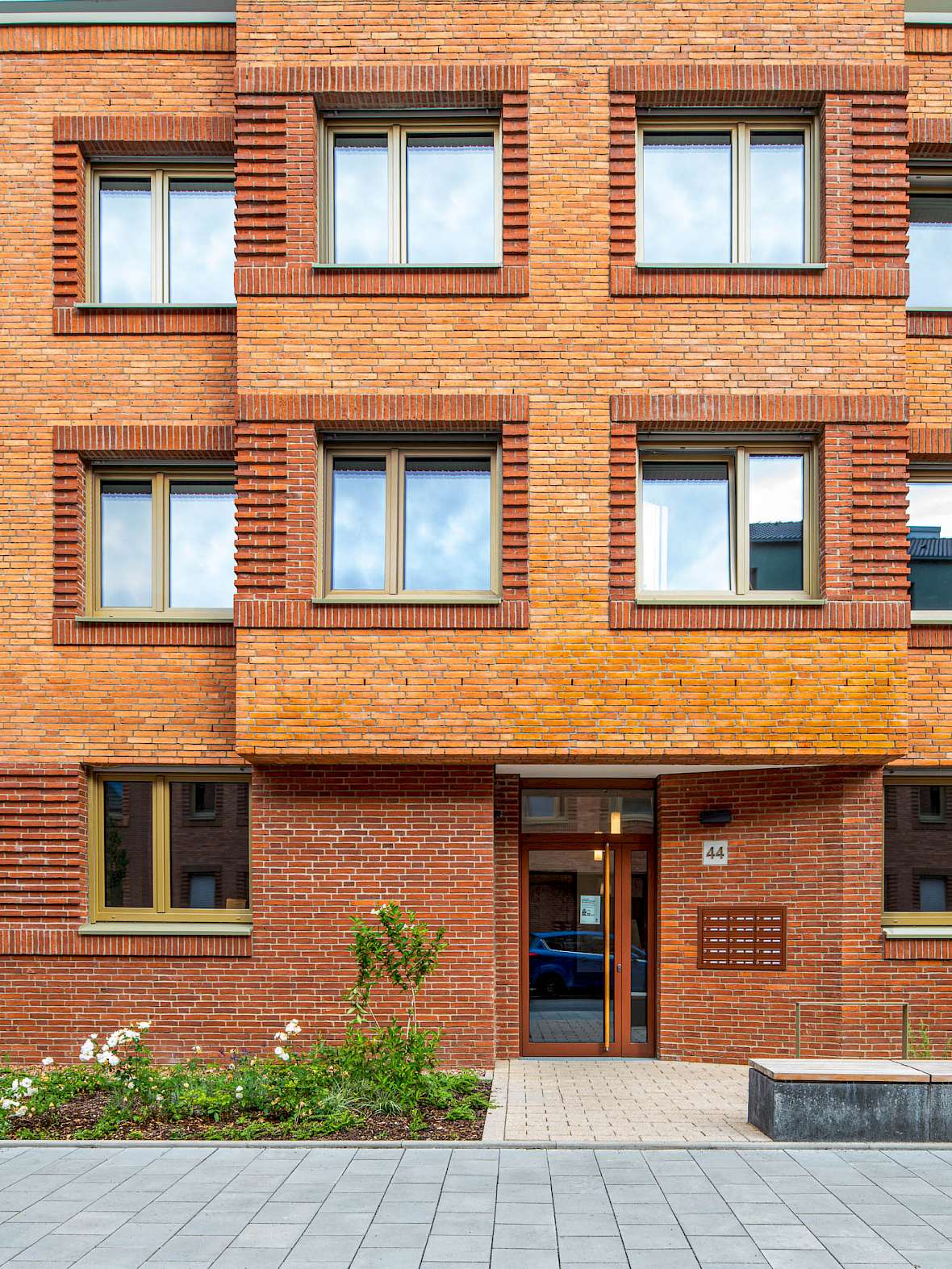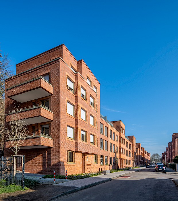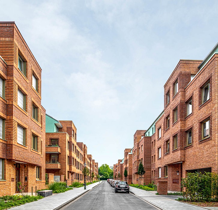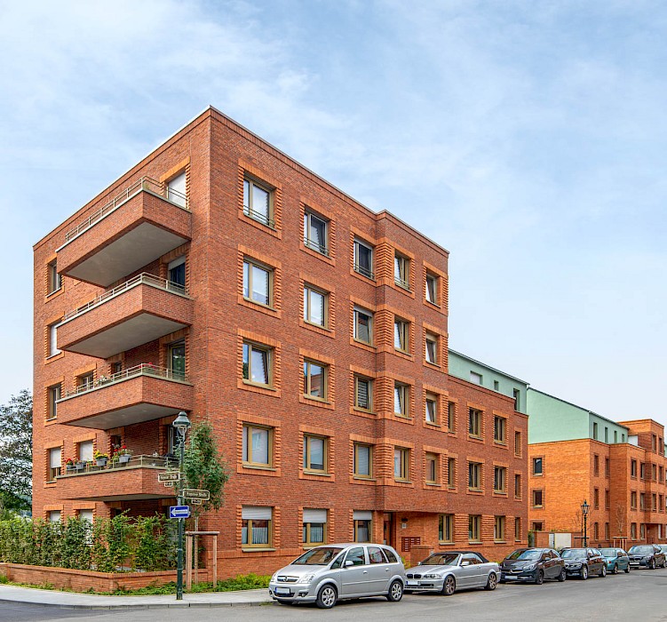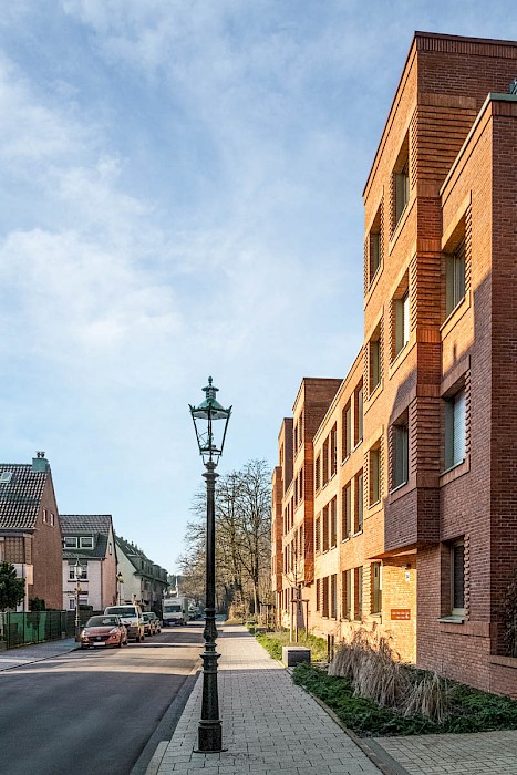 Für die traditionsreiche Genossenschaft WOGEDO haben wir im Osten Düsseldorfs ein neues Wohnquartier mit 16 Neubauten und 188 Wohnungen realisiert. Besondere Sorgfalt haben wir auf die plastische Gliederung der Baukörper und die Profilierung der Klinkerfassade gelegt.