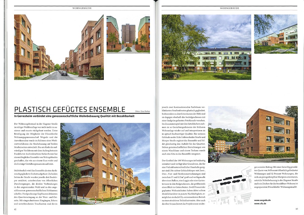 In einem von der Düsseldorfer Wohnungsgenossenschaft WOGEDO ausgelobten Wettbewerbsverfahren für einen Straßenzug in der Hagener Straße wurden Stefan Forster Architekten mit dem ersten Preis ausgezeichnet. Realisiert werden 16 Häuser, die sich in Kubatur und Materialwahl am Bestand orientieren.