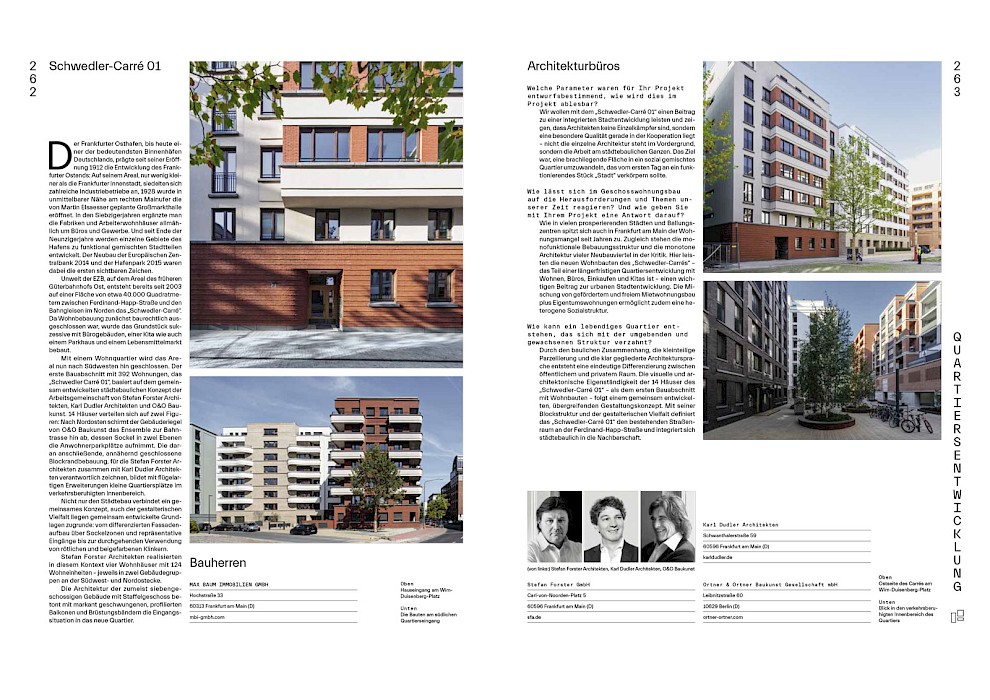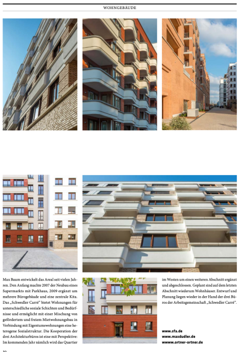 Fachbeitrag für die erste Ausgabe des Magazins „Quartier“ über die Wohnbebauung des Schwedler-Carrés 01 und die Kooperation mit Karl Dudler Architekten sowie Ortner & Ortner Baukunst.