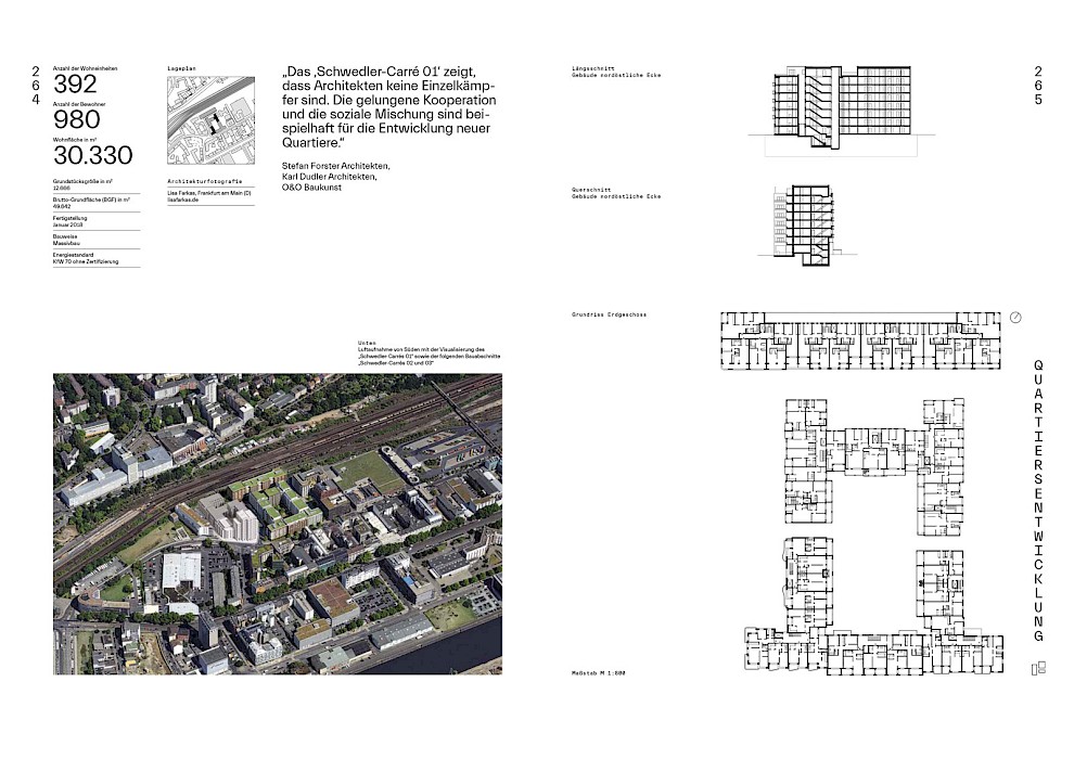 Die Publikation „Ausgezeichneter Wohnungsbau“ präsentiert 50 herausragende Wohnbau-Projekte aus dem deutschsprachigen Raum, darunter das „Schwedler-Carré 01“ in Frankfurt. In ausführlichen Porträts werden die mit dem Award „Wohnbauten des Jahres 2021“ prämierten Projekte mit Fotos, Planmaterial und begleitenden Interviews vorgestellt.