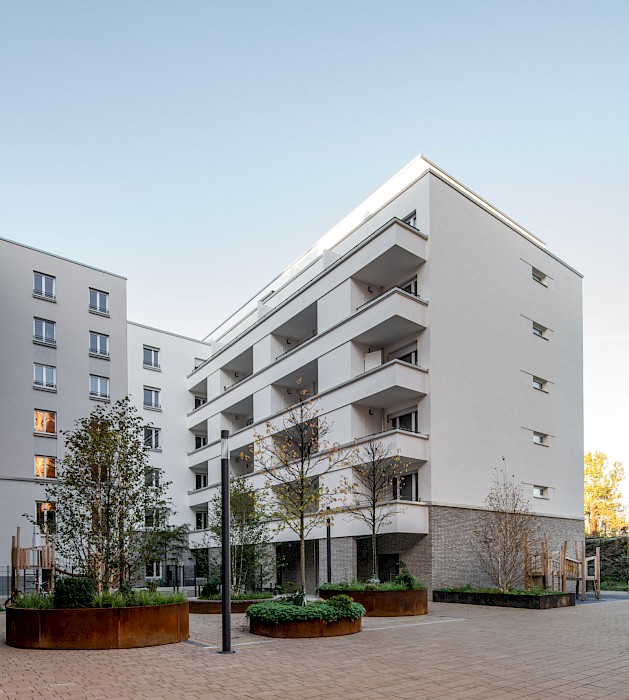 Based on the outline building application to Karl Dudler Architekten, the three architectural bureaus held workshops with the client to develop ideas for the district. A range of planning ideas was worked out, to be delivered in three phases of construction. The first phase began in 2015 on the western part of the site, with the last phase, in the southwest, being completed in 2023. The urban development concept is based on the idea of the European city, with clearly defined private, public and semi-public spaces. In line with the overarching guidelines, the whole area was divided into individual lots, each bearing the individual design signature of one of the three architects. This gives rise to an architectural diversity held together within the strong urban design framework.