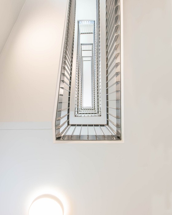Bremen is home to one of the largest urban development projects currently ongoing in Europe: Überseestadt, in the west of this Hanseatic city. Begun in 2000, a 300-hectare site – a former industrial port area – is being transformed in stages into a mixed-use urban district with commercial and service businesses, leisure and cultural facilities and housing. These two new buildings, providing 150 apartments, are located on a narrow plot in the eastern part of the site. They each have a base storey accommodating small business units, shops, cafés and apartments, thus meeting the requirement for enlivened ground floor zones stipulated in the program for this multi-functional urban district. The principal challenges were the loud street side (no main rooms could face this side because of noise emissions) and the broad mix of apartments, from one to five rooms in size.
