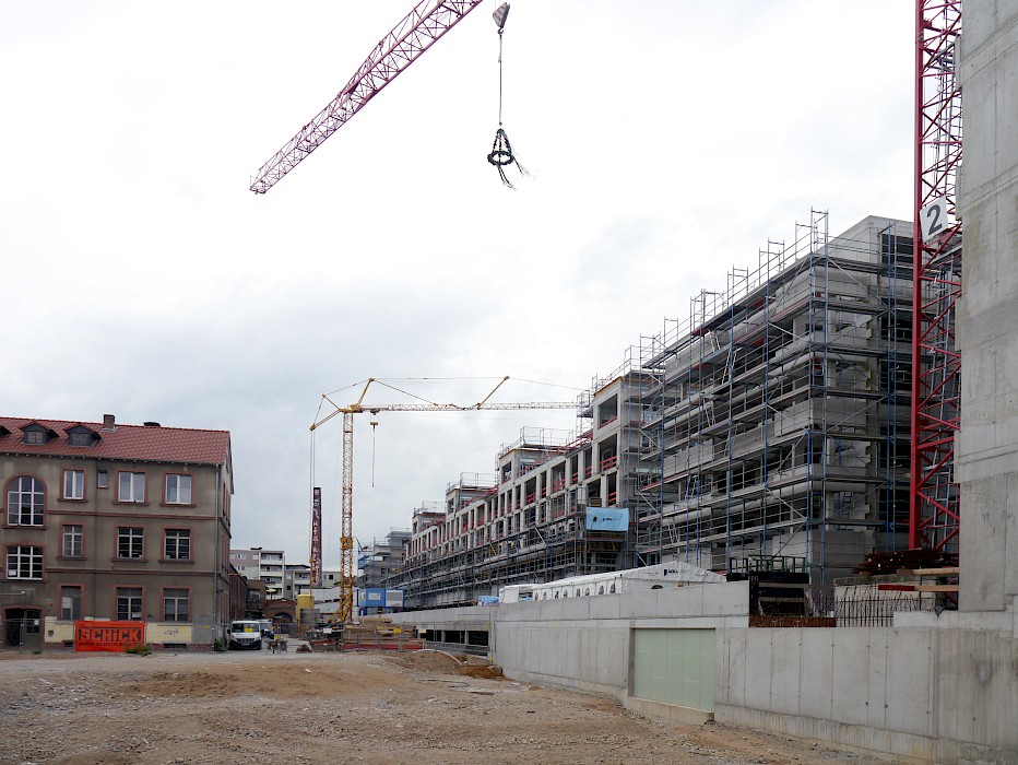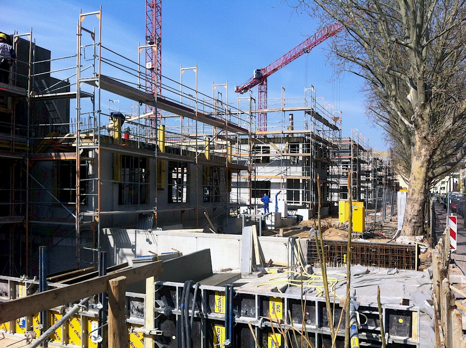 Entlang der Wingertstraße in Frankfurt am Main werden derzeit 116 Wohnungen im Passivhausstandard auf dem ehemaligen Gelände der Naxos Union realisiert. Die geplanten Gartenhöfe entlang des Querriegels sind schon ablesbar. Die Fertigstellung des Projektes ist für 2013 geplant.
