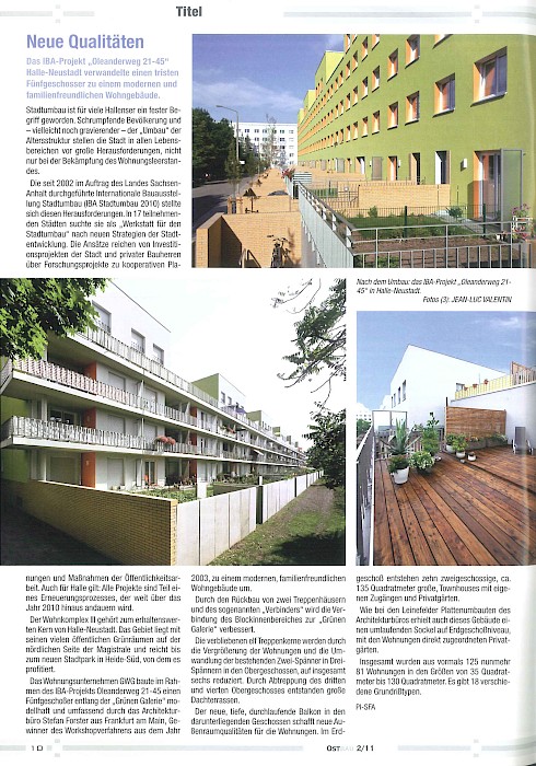 Artikel: „Neue Qualitäten - Das IBA Projekt Oleanderweg in Halle“, Ostbau, 2/2011
